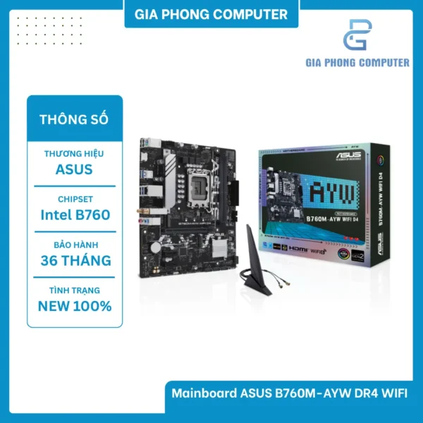 Một ưu điểm quan trọng của ASUS B760M-AYW DR4 WIFI là việc lắp ráp cực kỳ dễ dàng cho cả người mới và kỹ thuật viên chuyên nghiệp. Khi khách hàng đến Gia Phong Computer để build máy, bo mạch này luôn nằm trong nhóm mainboard ít gặp lỗi nhất, tương thích tốt với nhiều loại RAM, VGA và nguồn.