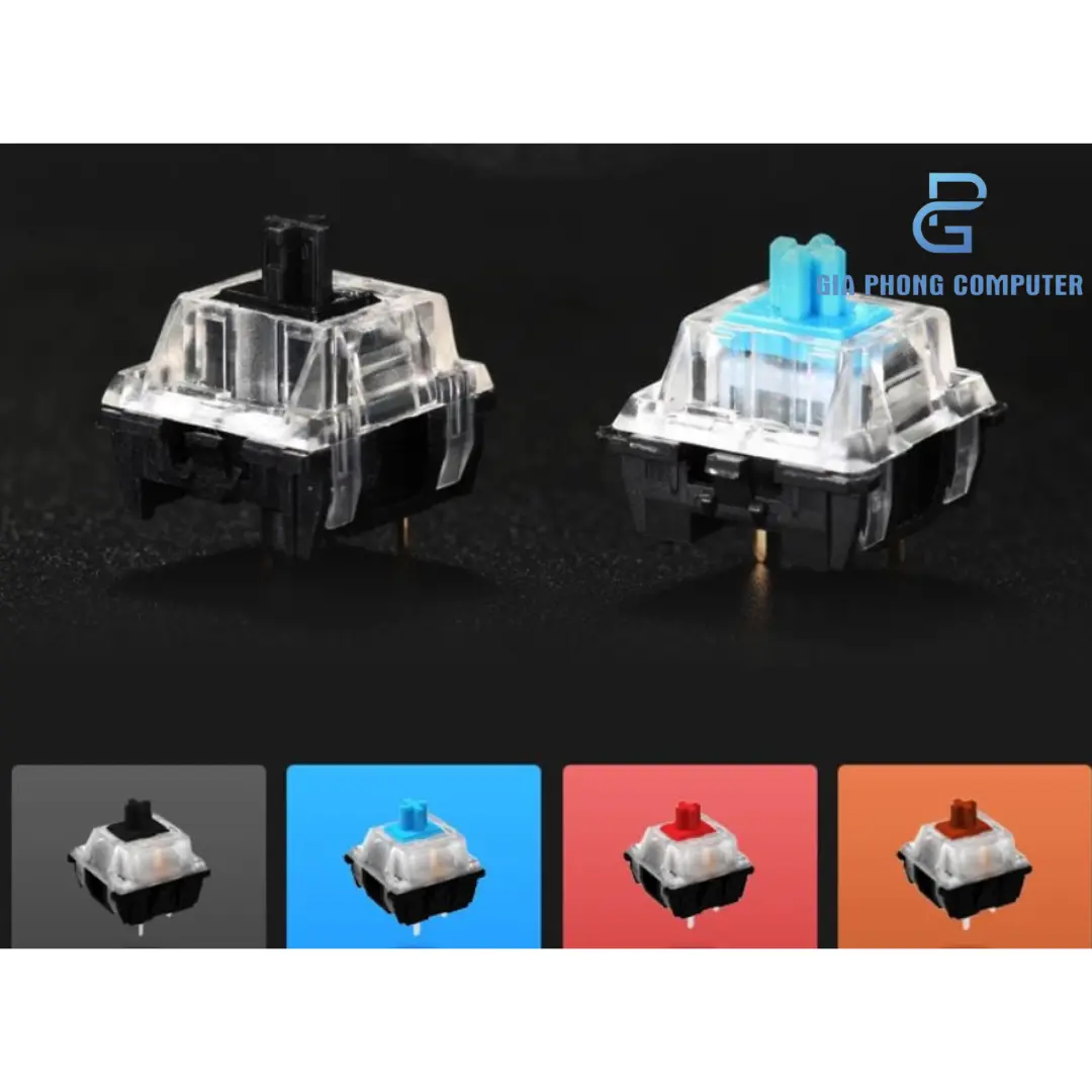 Blue Switch: tiếng click rõ ràng, lực nhấn mạnh, mang lại cảm giác gõ “đã tay”, phù hợp nhập liệu, soạn thảo văn bản.