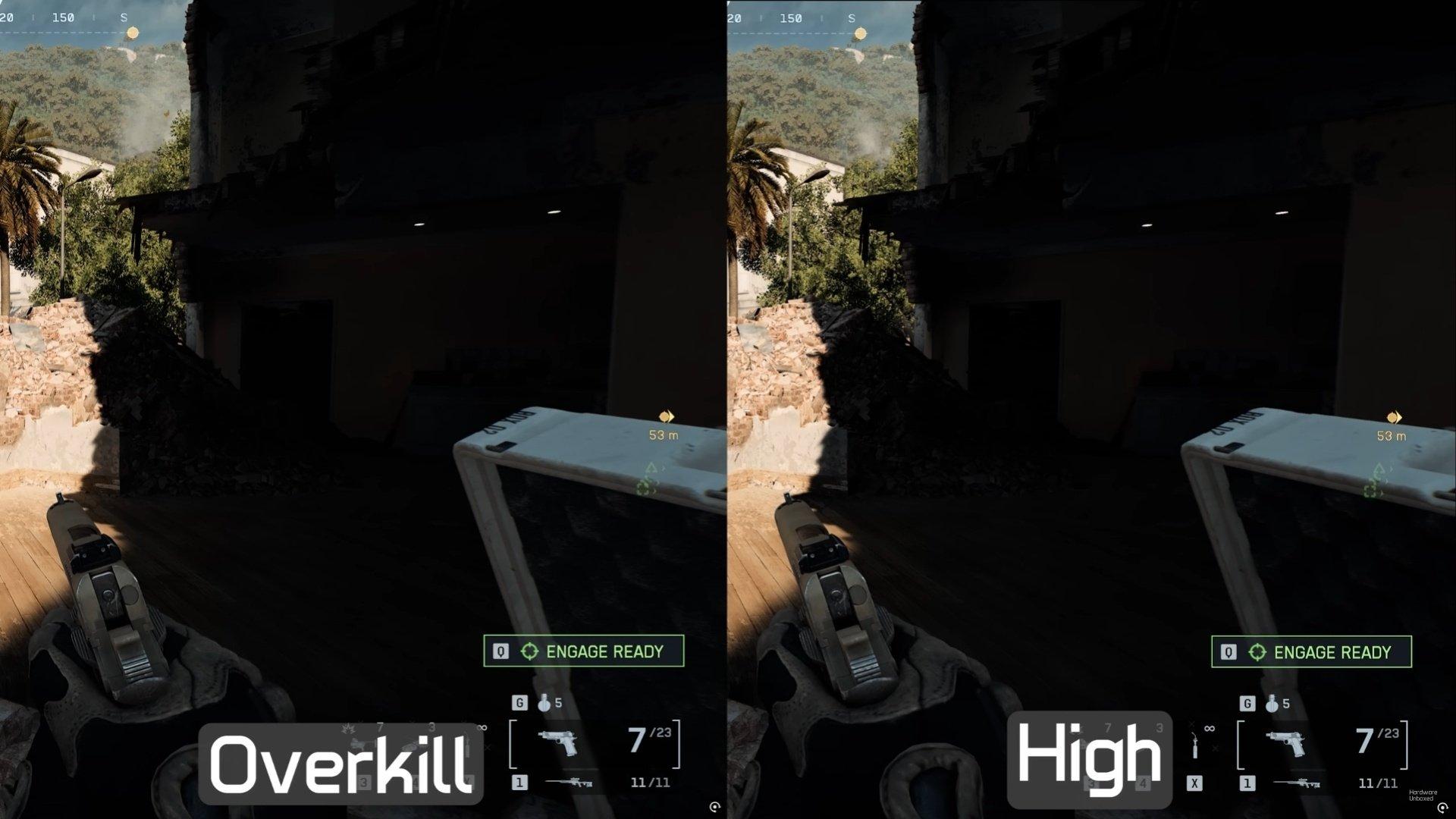 Các preset từ Low đến Overkill tạo ra sự chênh lệch đáng kể về chi tiết vật thể, đổ bóng và hiệu ứng ánh sáng.