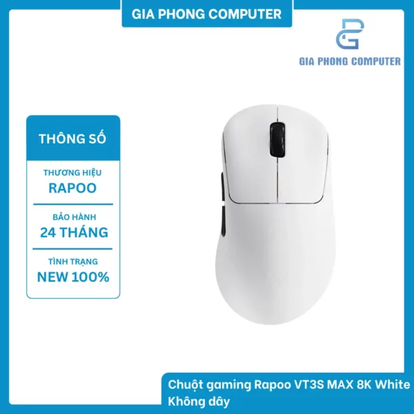 Nếu bạn muốn sở hữu Chuột gaming Rapoo không dây VT3S MAX 8K White chính hãng, bảo hành uy tín và được tư vấn tận tâm về sản phẩm, hãy liên hệ Gia Phong Computer – địa chỉ tin cậy cung cấp gaming gear và linh kiện máy tính chất lượng, cam kết mang đến trải nghiệm mua sắm hài lòng.