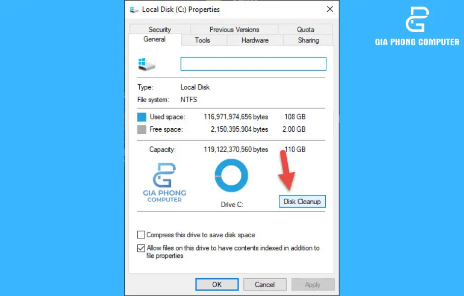 Disk Cleanup là công cụ tích hợp sẵn và đơn giản nhất để khắc phục ổ C bị đầy Windows 10.