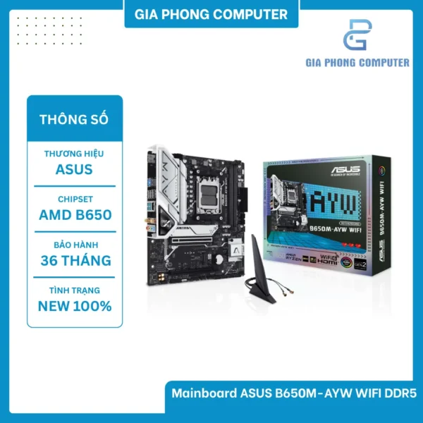 Trong nhóm mainboard sử dụng socket AM5 dành cho Ryzen 7000–9000, ASUS B650M-AYW WIFI DDR5 được xem là một trong những lựa chọn đáng chú ý nhất nhờ sự kết hợp giữa hiệu năng mạnh mẽ, thiết kế tinh gọn và khả năng hỗ trợ công nghệ đời mới như DDR5, PCIe cao tốc và WiFi tích hợp. Đây là sản phẩm hướng đến người dùng muốn xây dựng hệ thống chơi game, làm việc đồ họa hay đa nhiệm chuyên sâu mà vẫn đảm bảo mức chi phí hợp lý so với các bo mạch chủ dòng X-series.