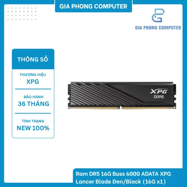 Tại Gia Phong Computer, Ram DDR5 16G Bus 6000 ADATA XPG Lancer Blade Đen là dòng sản phẩm được người dùng lựa chọn nhiều bởi chất lượng linh kiện bền, hoạt động mát và ổn định, phù hợp cả với gaming lẫn làm việc trên những hệ thống đời mới nhất của Intel và AMD.