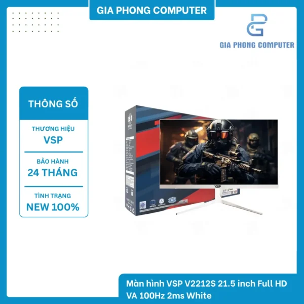 Màn hình VSP V2212S 21.5 inch Full HD VA 100Hz 2ms White là lựa chọn hoàn hảo cho người dùng muốn một chiếc màn hình màu trắng đẹp, nhỏ gọn, hiển thị tốt và giá rẻ. Với tần số quét 100Hz, hiển thị sắc nét, độ tương phản cao cùng đa dạng cổng kết nối, đây là sản phẩm cực kỳ phù hợp cho văn phòng, học sinh – sinh viên hoặc các bạn thích setup tone sáng.